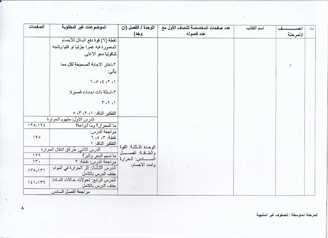 أدناه تكييف المناهج للمرحلة المتوسطة حذوفات الصف الاول المتوسط حسب تعليمات وزارة التربية العراقية للعام الدراسي 2022/2021م